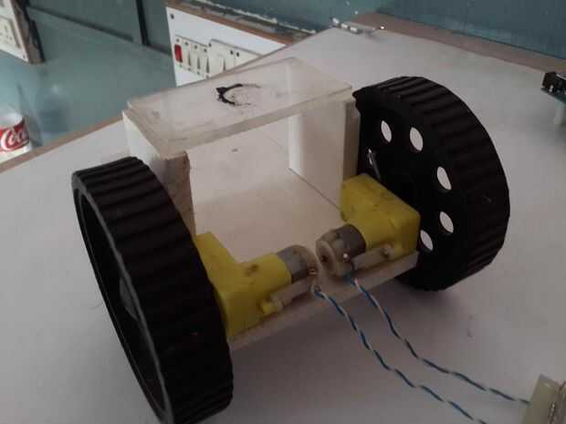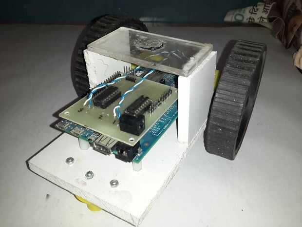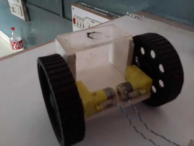 Su el paso más simple en este completo tutorial, donde en sólo tienes que montar el robot. Usted puede venir para arriba con su propio diseño si quieres. Usaremos algo llamado mecanismo diferencial, donde dos motores será lugar frente a la unos a otros como se muestra en la figura 1. Esto permite que el robot para moverse en adelante, atrás, izquierda y derecha de la dirección. Este es el mecanismo más simple para manejar un robot. Puede arreglar el robot como se muestra en la foto, donde va el tablero de edison en el centro con el escudo capaz de pila.