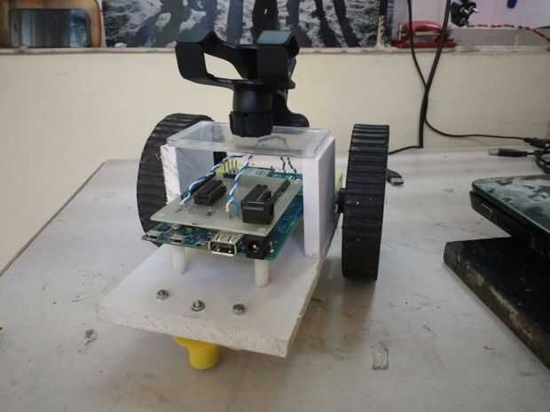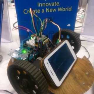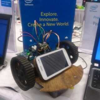 smartphone del robot en el titular del teléfono, conectar fuentes de alimentación al tablero de Edison y el escudo. se pueden usar baterías de lipo de 5v o 6v baterías de plomo ácido.