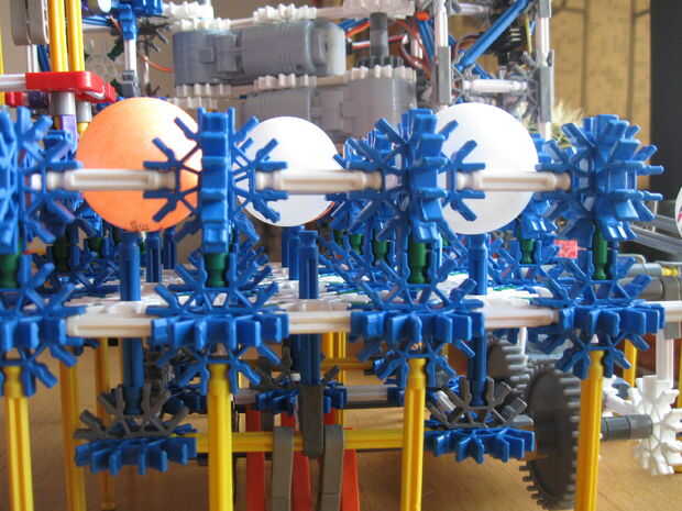 El código de ejemplo también requiere un mecanismo para elevar las bolas de sus tolvas al final del juego para que la pinza puede recogerlos. El siguiente vídeo muestra mi mecanismo para subir y bajar las patillas que empujar las bolas hacia arriba.