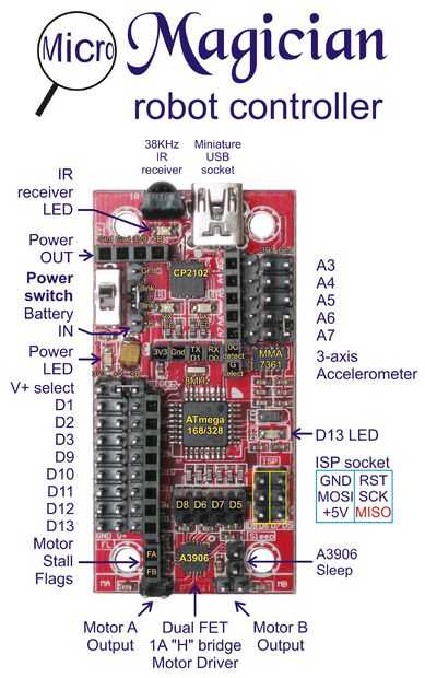 Lo bueno de los magos de Micro es que hacen tan fácil el cableado. El receptor de IR integrado en la placa permite cualquier Sony mando a distancia o control remoto universal para ser el teclado. Los magos de Micro viene con una librería de Arduino que incluye un decodificador Sony IR. Esto hace que la lectura de las señales del mando a distancia muy fácil. Una indicación LED del controlador le permite saber si el receptor detecta una señal. Esto es útil para la depuración.