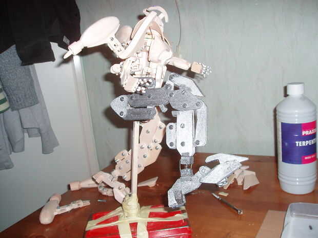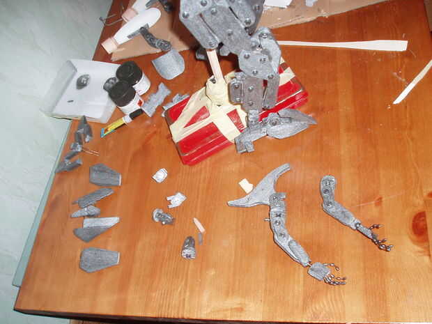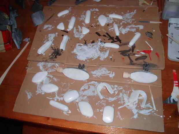 Después de todas las piezas son pintadas y secas hasta pegar en el y hacer el montaje final.