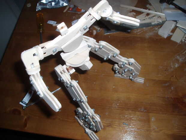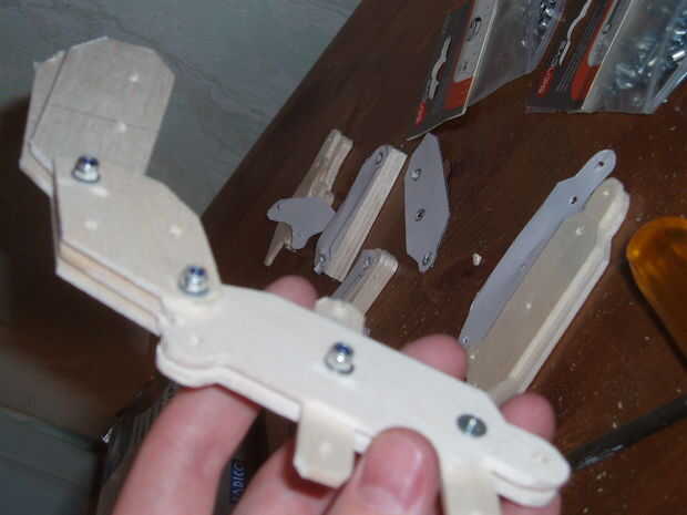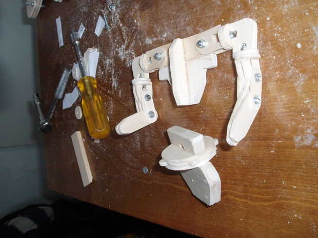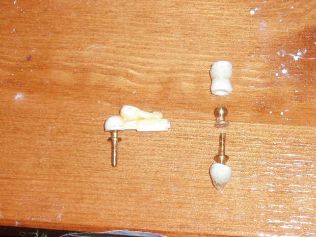 Puede utilizar un alambre de cobre, como lo hice en begin, bud después un wile es comienza a deformarse y se convierte en demasiado débil para soportar el peso completo del modelo. Así que terminé reemplazándolos. Usé algunos empalmes que tengo de la tienda. Generalmente utilizan estos conjuntos de servomotores. Bud ahora tienen una nueva tarea. Sólo se cortan el alambre de la soldadura de la esfera las esferas juntos. Remodelar las tapas y perfore un agujero en una pieza de madera de 20mm. Pegar las tapas en la madera y la articulación son buenos ir.