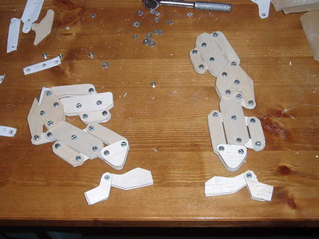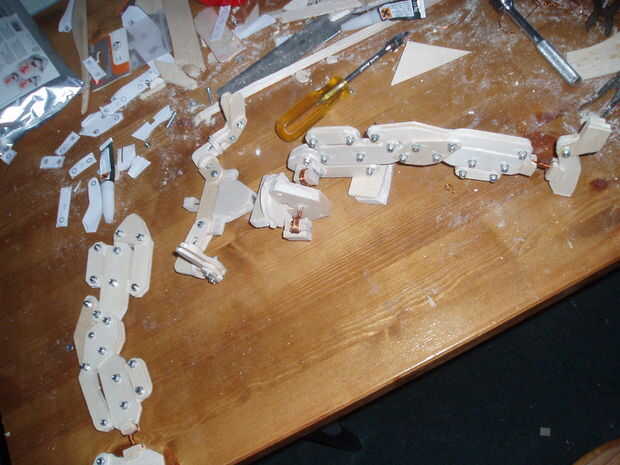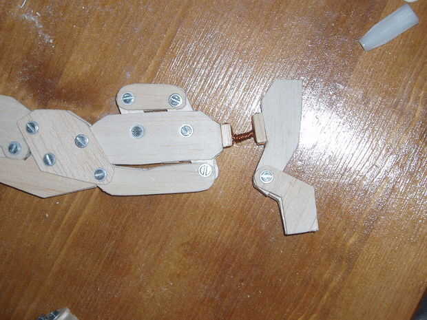 Alambre era difícil mover fuerte bud. Cable tenía un animoso bud efecto hizo el trabajo. Terminé reemplazándolos whit madera hecho juntas para agregar movilidad y estabilidad a la estructura de esqueleto.