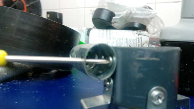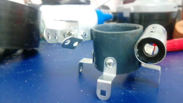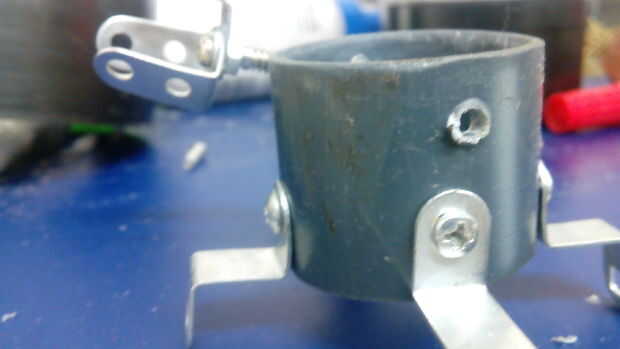 que hizo un agujero en el PVC y atornillado el Lanzacohetes en el robot