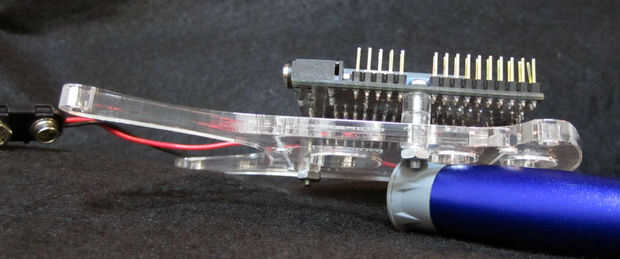 Conecte su microcontroler (Picaxe en la foto) a la placa portadora. Necesitarás. 75" tornillos + tuercas y 4 discos.