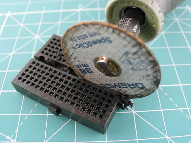 Si así es al revés: DIY. Vamos a tomar un protoboard común (de cualquier tamaño que tiene) y corte a tamaño de pernos 5 x 10. Me decidí a elegir este camino porque a menudo escoger el camino equivocado.