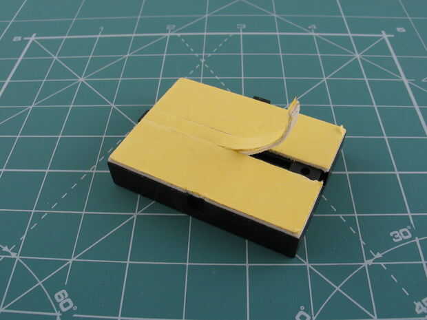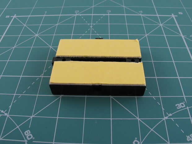 En la parte inferior de la placa común hay una cinta de montaje. Si nos quitamos la placa cae a pedazos. Pero te recomiendo sacar algunas zonas de la tira justo donde vamos a hacer recortes.
