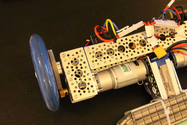 Los siguientes pasos describiremos cómo montar el sistema de impulsión. El sistema de impulsión totalmente utiliza piezas de Actobotics (que aparece más adelante). Este motor y el resultado del cociente del engranaje en un agradable equilibrio de poder y velocidad en el robot final.