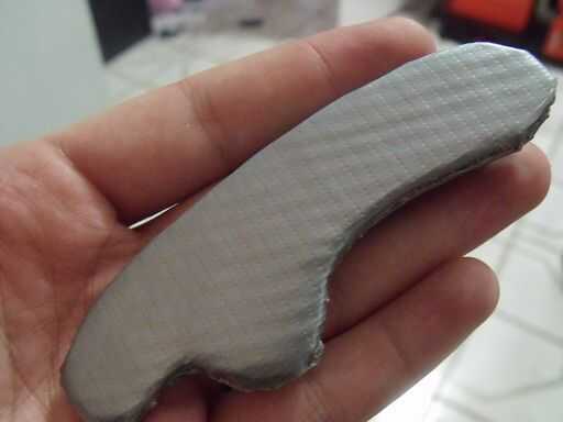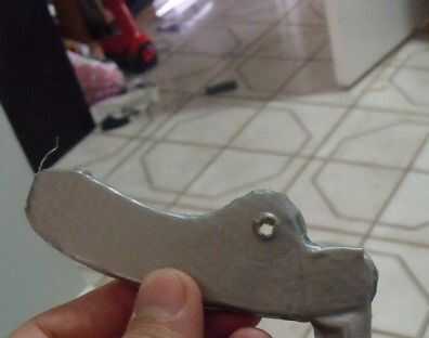 Ahora hacer la garra, la pieza "D". dependiendo del grosor de la cartulina tienes que poner tantas capas de cartón y cinta como quieras hasta que obtengas una fuerte garra (en mis capas caso 2 cartones y uno de cinta)