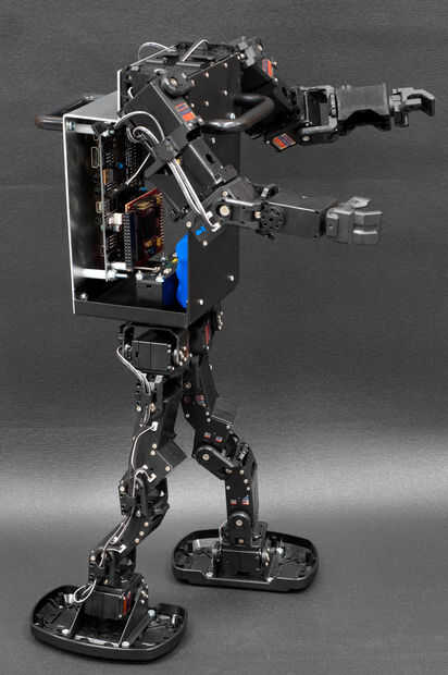 Él es un robot humanoide autónomo 53 cm de alto, pesa casi 1 kg, y tiene 20 servomotores cada uno capaces de 14 kg * cm del esfuerzo de torsión. A bordo, circuitos personalizados unir cuatro microprocesadores de gran alcance: dos de 500 MHz Blackfin DSPs (uno para cada una de las dos cámaras en la cabeza para visión estéreo), un microordenador de linux de embedidos Overo aire 600 MHz y una tarjeta de controladora de movimiento de 20 MHz.