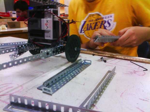 Utilizará los 4 carriles de chasis y 2 bares holke larga para realmente construir la base del robot, así que usted puede colocar el Panel VEX, motores y ruedas.