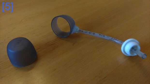 5. Cortar la parte superior de la tapa del desodorante y un agujero permitir que el gas de salida abierto. Pegamento caliente un tubo de plástico a la medicina de la caja del enchufe. Esta tubería debe ser tan corta como sea posible!
