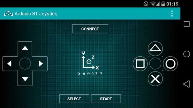 • Llevará Android teléfono e ir a la tienda del juego. Buscar "Arduino BT Joystick" e instalar la aplicación ejecutar y activar el robot. Uso del botón "conectar" conectar el teléfono con el Arduino. Usted encontrará "HC-06" en la lista de dispositivos bluetooth.