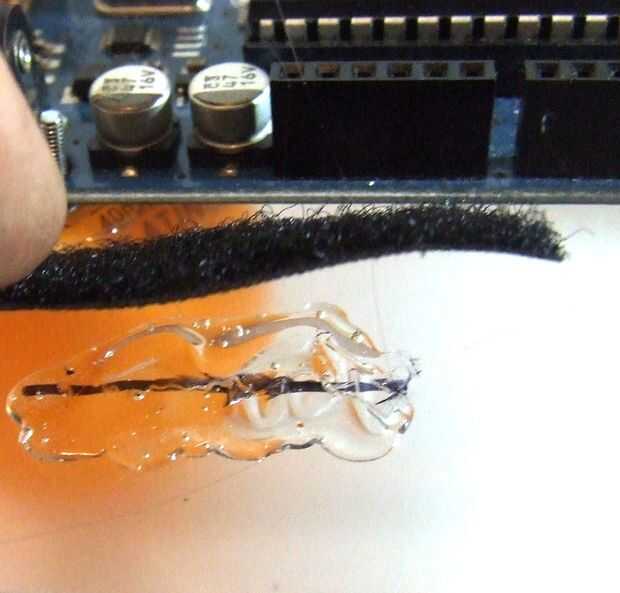 Conecte la batería por caliente pegar un lado del Velcro en el borde de la batería y el otro en el chasis donde usted lo desee. Utilizar un montón de pegamento caliente para cubrir toda la superficie para asegurar que adhiere firmemente. (Recuerde que debe ser accesible.)