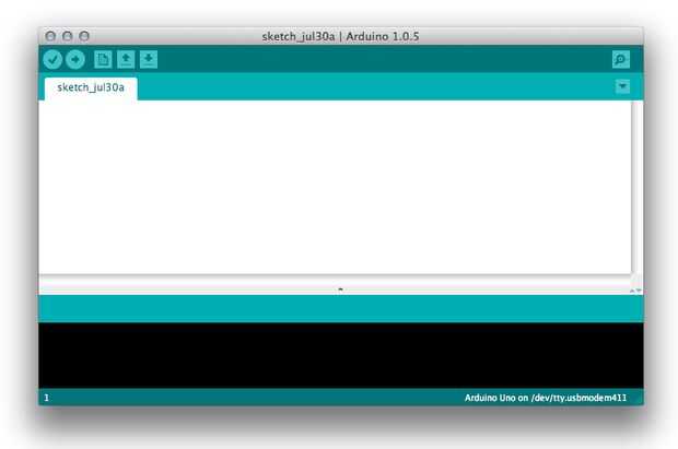 1. Abra el IDE de Arduino. Por defecto se mostrará un esquema vacío.