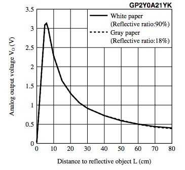 Utilizamos un sensor de distancia infrarrojo Sharp (GP2Y0A21YK0F) para medir las distancias de los objetos a tu robot. Su rango se limita de 10cm a 80cm.