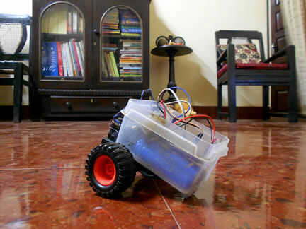 Como una plataforma para el robot, usé un motorreductor de un juguete viejo y había unido a una tina de queso. Toda la electrónica se pondrá en la bañera:-P