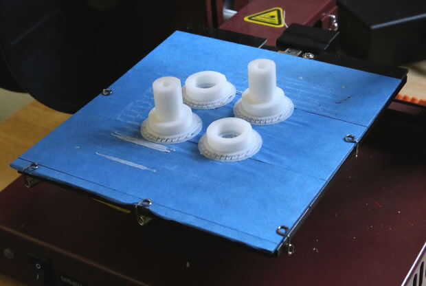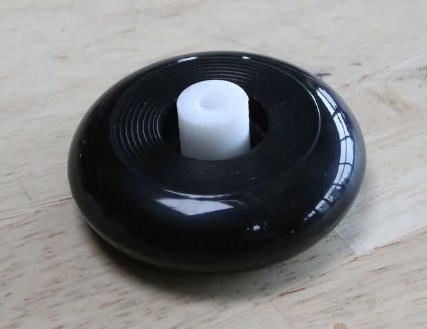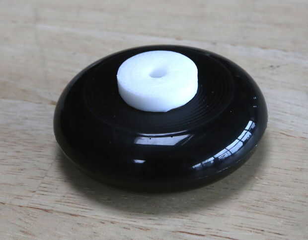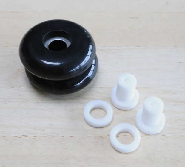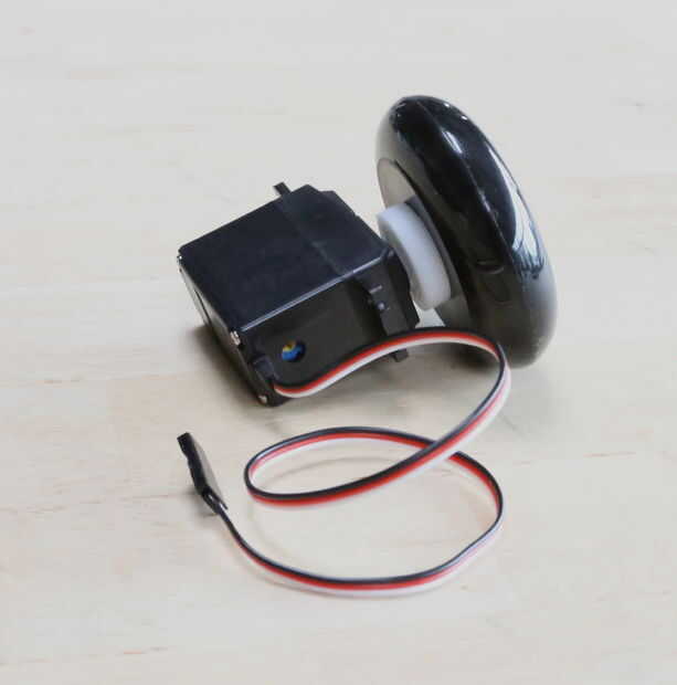 Imprimir los soportes de rueda y partes movibles que se incluyen en una impresora 3D Afinia. Prensa para montar el soporte de la rueda en el eje de una rueda de equipaje de goma de 60mm, tapa y prensa para montar la pieza restante en el otro lado. El nuevo centro de encastre en el eje del servo. Hacer esto para ambos servos.