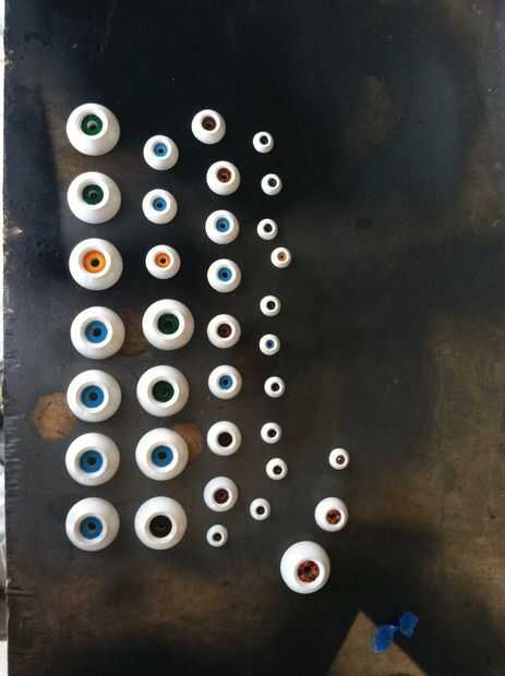 • Para los globos oculares, rocía una capa base de pintura acrílica esmalte blanco antes de aplicar mano había cepillado colores acrílicos para el iris.