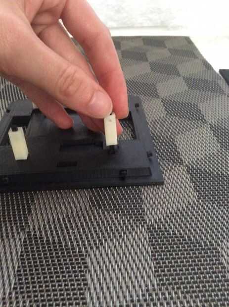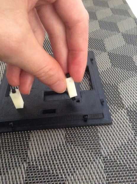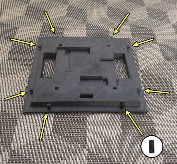 • Todas las clavijas del conector están diseñadas para formar una fricción ajuste con sus correspondientes agujeros del receptáculo. Puede ser un ajuste de apriete (especialmente con piezas recién impreso), por lo que puede utilizar pinzas para insertar las clavijas a lo largo de este proceso de montaje final.