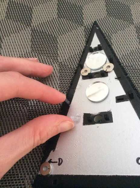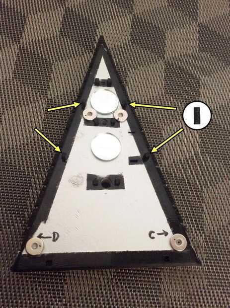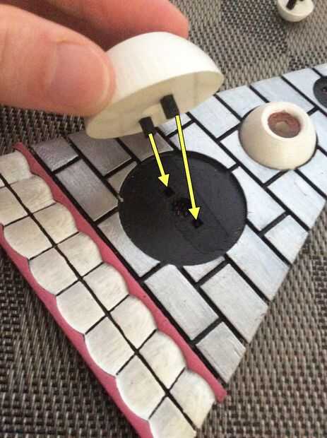 3. Inserte las clavijas del conector diferente en los agujeros en la parte posterior de las caras como se muestra en las fotos.
