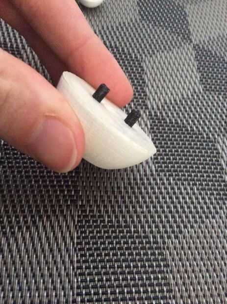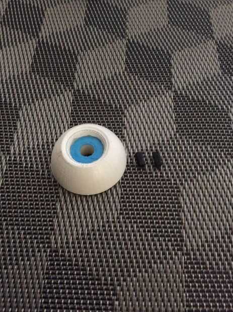 1. Inserte las clavijas de conector recto 2 en los dos agujeros en la parte posterior de cada ojo. (12 ojos en total).