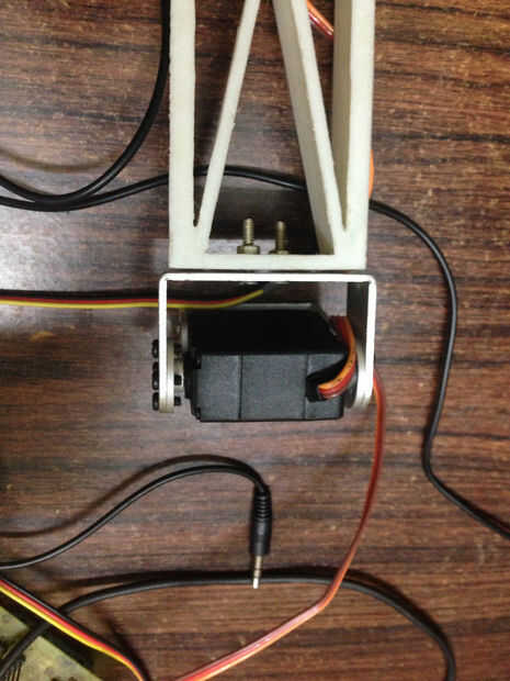 Fijar uno de los soportes del servo en la mesa como en la segunda imagen con tornillos, clavos o tuerca bolt(preferable).