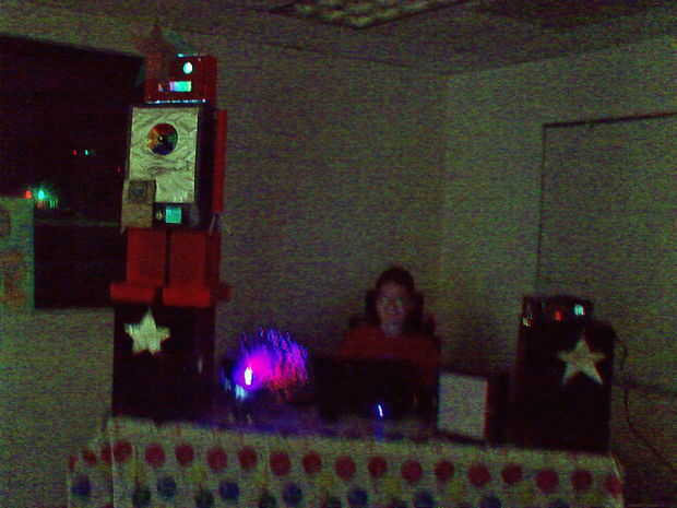 Mi sobrina va a tener una fiesta de cumpleaños temática Disco, y como luz discoteca decoraciones puede ser costoso, decidí hacerme algunas decoraciones frescos. Durante las vacaciones, era un TV comercial cuenta con una discoteca robot http://www.youtube.com/watch?v=xxSZpZjoUXQ. Como un friki completo, la idea de construir un robot disco parecía como la decoración de fiesta perfecto. Naturalmente, no iba a gastar el dinero para construir un robot real, así que decidió hacer un robot de cartón en su lugar. Este robot de cartón también fue inspirado por el episodio de South Park donde Eric Cartman se hace en un robot de cartón llamado AWESOM-O http://www.southparkstudios.com/full-episodes/s08e02-awesom-o.