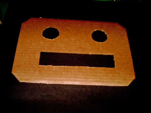 Cara del robot es la parte más importante del robot ya que es lo que le da la personalidad del robot.  Usted necesitará un pedazo de cartón del tamaño de la abertura de la caja que será la cabeza del robot.  Tomar un tubo de cartón (ya sea desde el centro de la toalla de papel o papel de embalaje) y trace los círculos para los agujeros del ojo del robot.  Es importante mantener el corte de círculos para el uso más adelante.  Cortar un rectángulo de largo para la boca del robot.  También puede guardar este trozo de cartón para su uso posterior.  Cuando termines, tienes una cara robótica mirada amistosa.