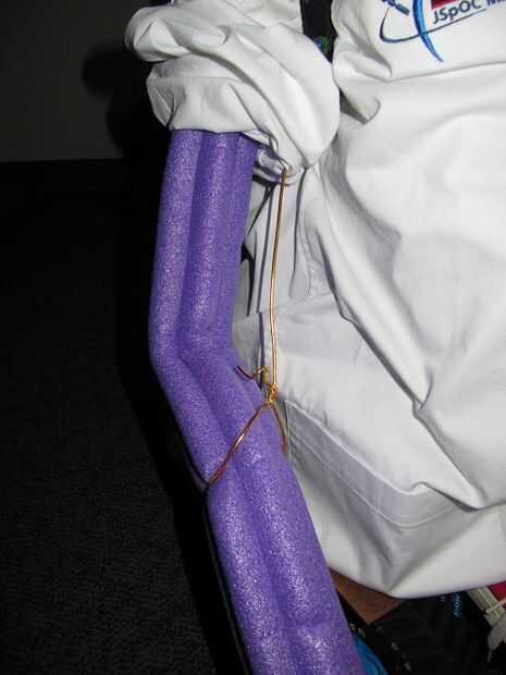 Utilice un fideos piscina conducto-grabado en el hangar de hombro y hacia abajo los lados para crear armas.