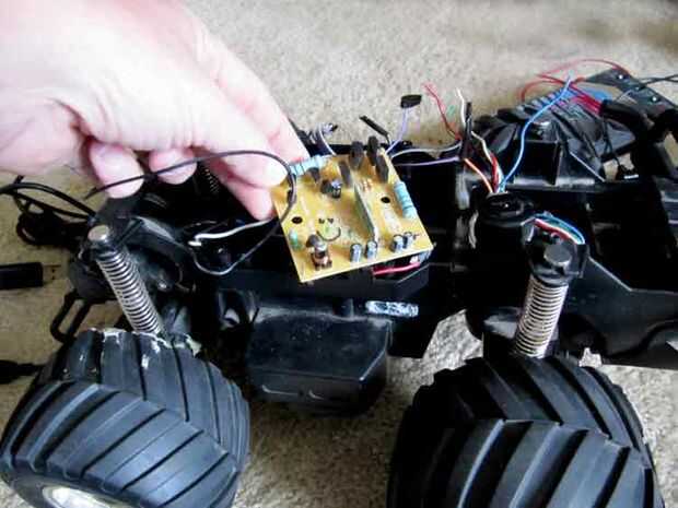 Si esta es a traumático aunque, o continuar poder correr el coche con el mando a distancia RC, puede dejar el tablero intacto y, en el siguiente paso, empalme/soldadura de los cables de acceso en/sobre el tablero. Esto le permitirá ser capaz de ejecutar el robot desde el control remoto para el coche (si el coche venía con uno). La mayoría de mi chasis viene de la venta de basura y no tiene un control remoto y el receptor es roto de todas formas.