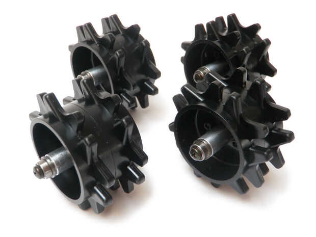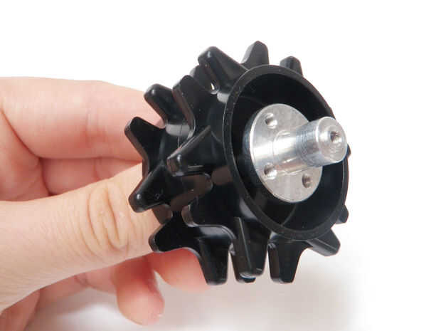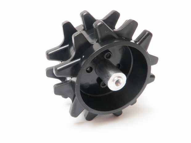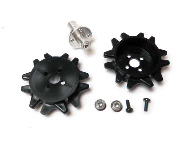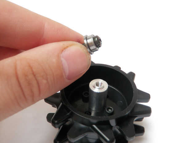 Armar un piñón rodillo insertando un hub intermedio a través de los orificios de dos mitades de la rueda dentada. Sujetar el conjunto con tornillos de 3 x 8 mm acero.