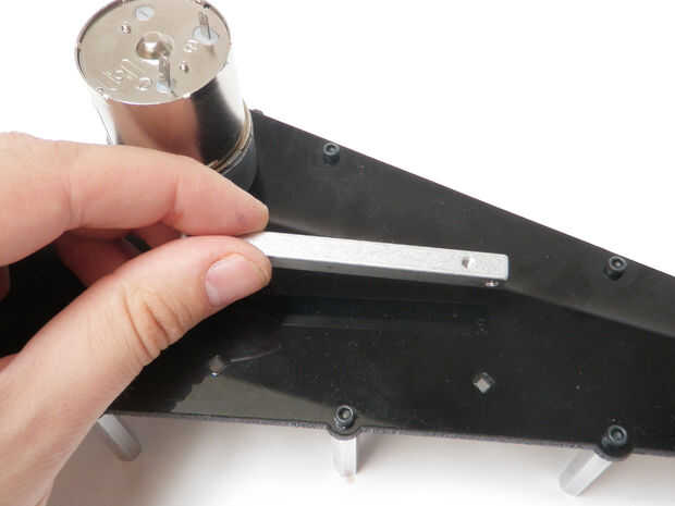 Coloque los bloques de montaje al panel lexan triangular en el mismo lado que el cuerpo del motor con tornillos 4-40 x 3/8".