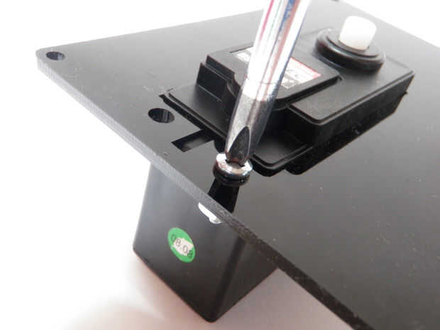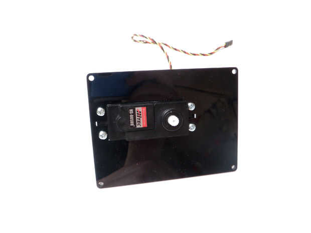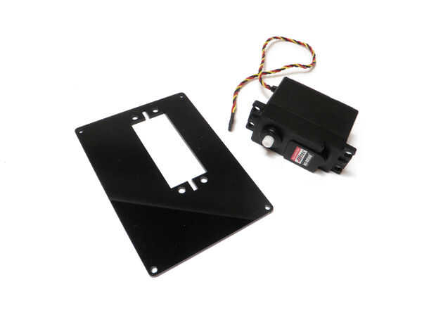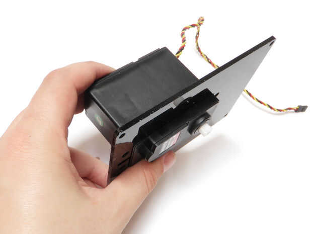 Inserte el servo en el otro soporte de acrílico del servo con el orificio rectangular grande. Perno el servo en su lugar con 6-32 x 1" tuercas y tornillos.