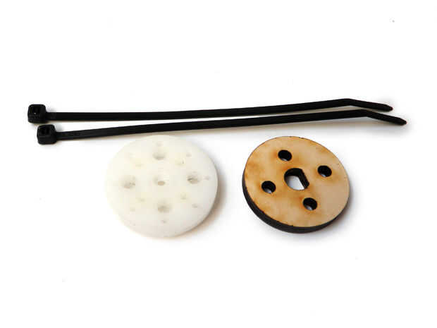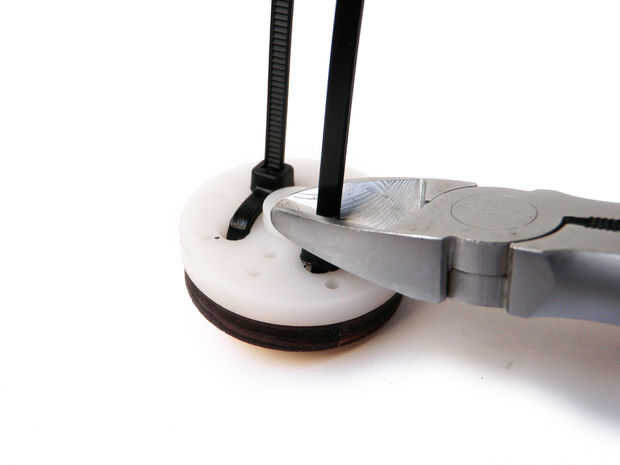 Zip empate el cuerno del servo al conector servo madera. Recorte cualquier cola de exceso zip tie.