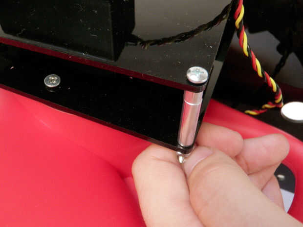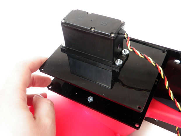 Conectar los dos soportes de acrílico servo junto con 2" tornillos y tuercas usando espaciadores de 1-1/4" en el medio. También, al hacerlo, inserte del cigüeñal del esparcidor de la semilla en el centro del conector servo madera. De esta manera, cuando el servo gira, el cigüeñal debe girar.
