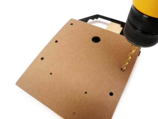 Descarga la guía de perforación adjunto y lo utilizan para perforar seis 1/4" a lo largo de los bordes exteriores del panel inferior de lexan.