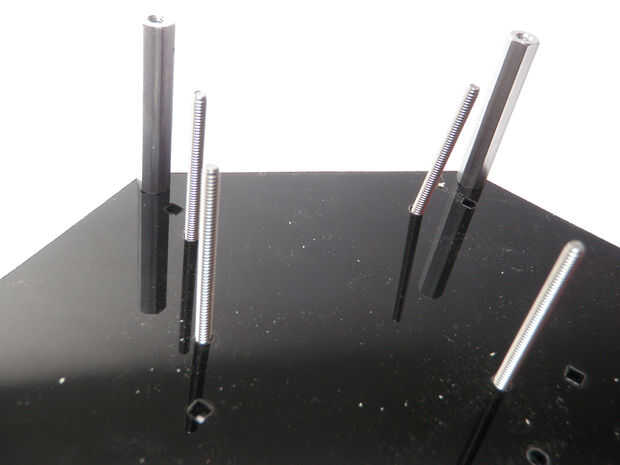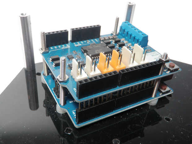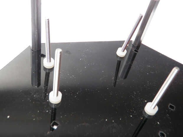 Conectar el Arduino a la placa base de lexan poniendo en espaciadores de nylon de 1/4" y pernos en su lugar con 4-40 x 2" y tuercas.