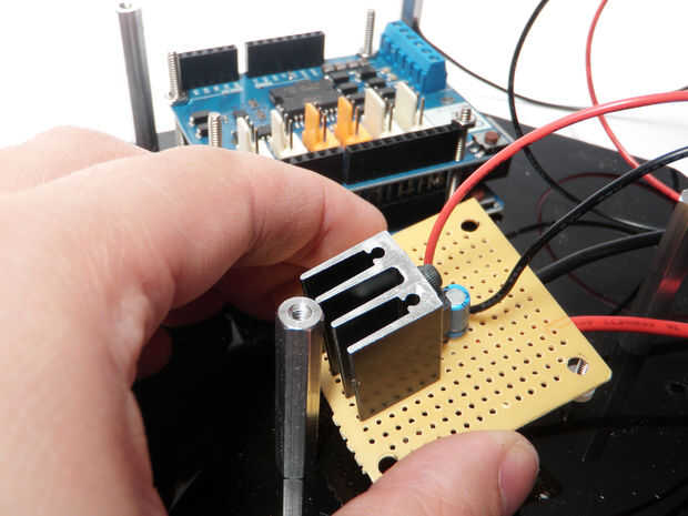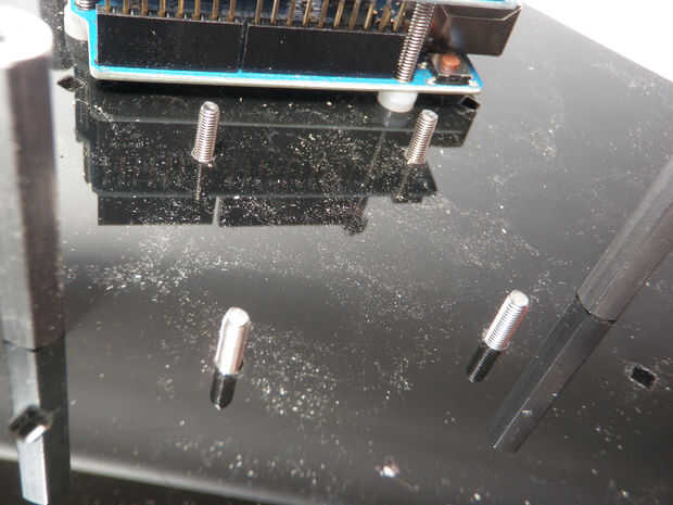 Coloque el tablero de energía en la cima de espaciadores de nylon de 1/4 y fije en su lugar con 6-32 x 1" tuercas y tornillos.