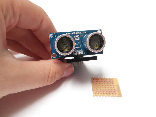 Conectar y soldar el cable rojo al pin de 5v en el telémetro.