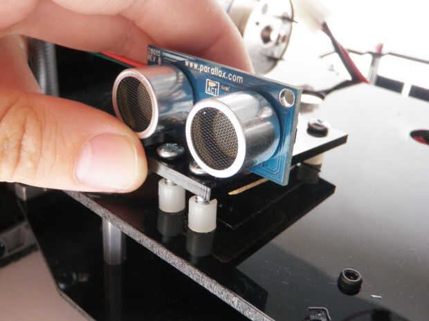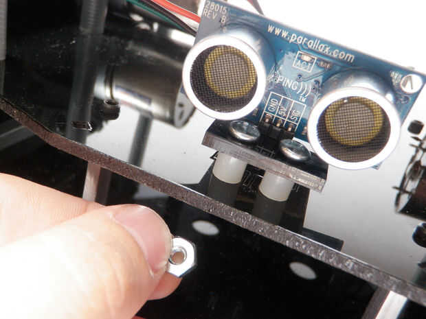 Monte el telémetro al servo delantero orificios de montaje en el soporte de lexan superior encima de 1/4 espaciadores de nylon usando tornillos y tuercas de 1 "x 6-32.