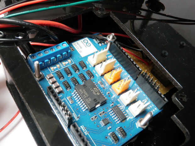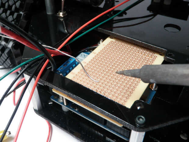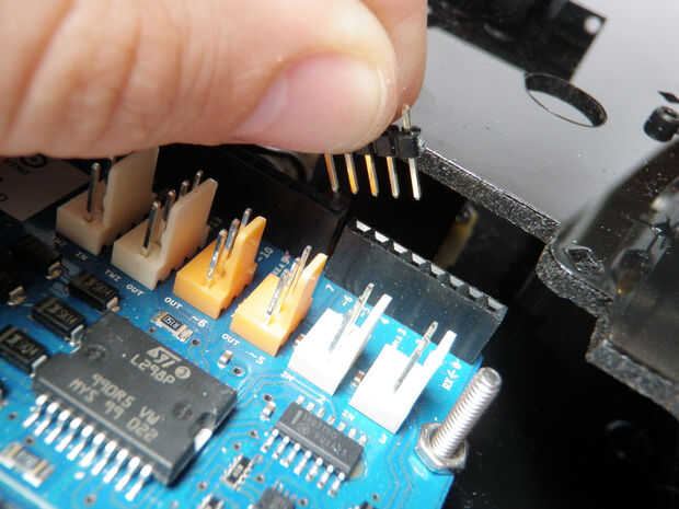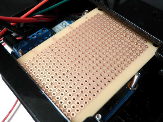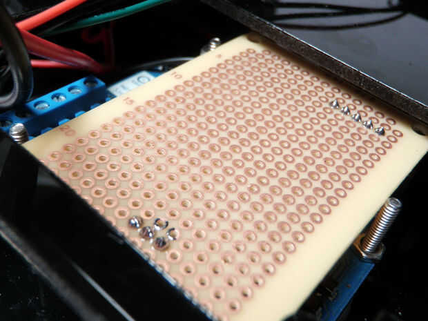 Mantener los encabezados en su lugar y presione hacia abajo una placa de circuito del prototipo a ellas.