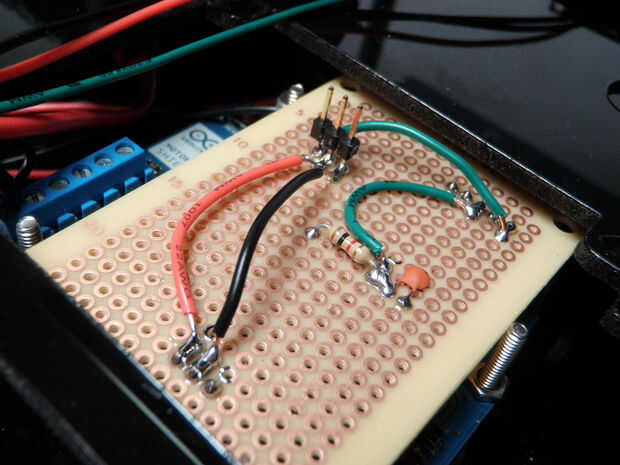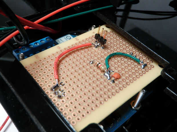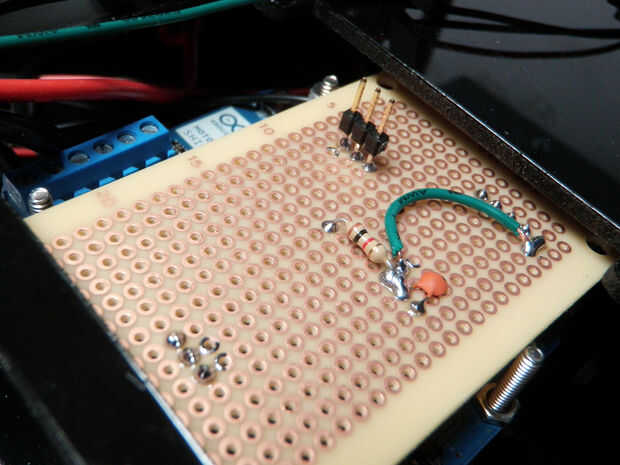 Soldar una resistencia de 1K y 0.1uF condensador en serie en el circuito. Conecte su punto central al pin digital 5.