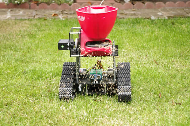 En teoría, el robot debe cubrir perfectamente el césped con semillas de césped. En realidad, que atraerá probablemente trazan un extraño modernista zig zag patrón.