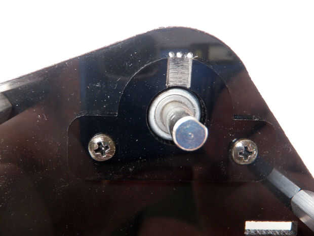 Perfore un orificio de 1/16" directamente sobre el soporte de acrílico sensor está centrado a lo ancho de la plaza al ácido. Taladre dos orificios más alineadas con las esquinas de la plaza al ácido.