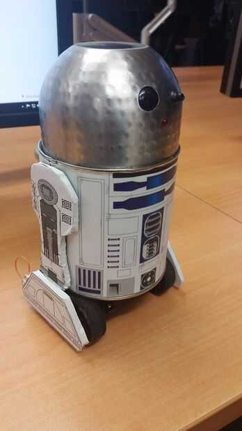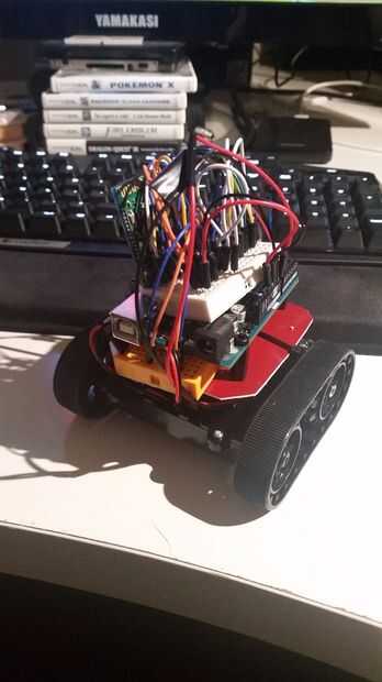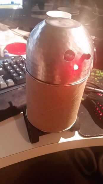 Aquí puedes ver mi progreso construcción. La primera foto es simplemente una "prueba de concepto" pic de progresión, donde burdamente montado todo y alimentado para arriba. progresa hasta mi iteración actual, con el cuerpo completo y calcomanías. Elaborado las "patas" del tablero de la espuma que tenía a mintiendo alrededor de la casa.