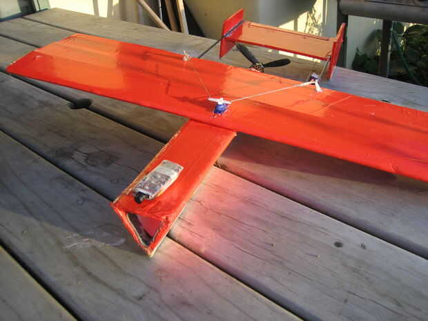se ejecuta en una sola 850mah 2cell lipo y un turnigy 2730-3000 sin cepillo hacia fuera del corredor por un tiempo de vuelo de 10 minutos.
