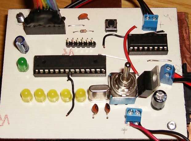 1 x ATMEGA8-también se pueden utilizar un ATMEGA 168 o 328. El programa se realiza en Arduino , así que si tienes un arduino, puede programar el microcontrolador, luego retire de arduino e insertar en este PCB. También puede programar este microcontrolador a través de 6 pines con un ISP. Usted puede comprar un ATMEGA 328 para programar en su arduino desde aquí: http://www.robotshop.com/sfe-atmega328-with-arduino-bootloader.html