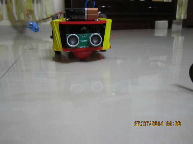 ya que yo tenía un montón de ATtiny2313s ahí que quería hacer algo fresco con ellos, pensó un poco y entonces decidió hacer una simple pared evitando robot con 2 motores, un sensor de ultrasonidos y el ATtiny2313.Su fácil de hacer y sencillo robot qu