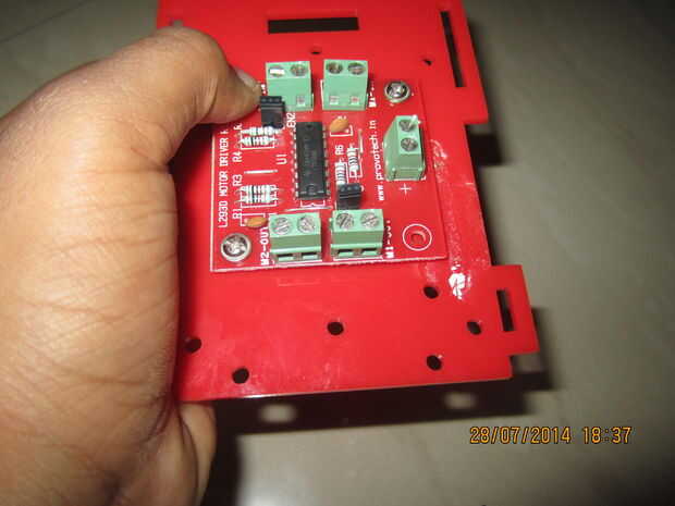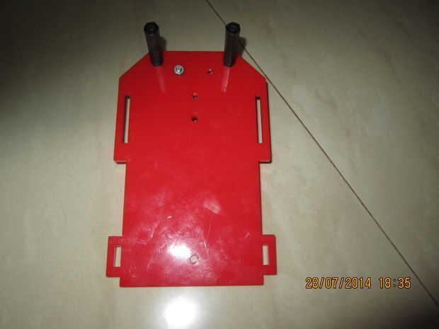 construir un pequeño robot programable mediante láser cortar acrílico para plataformas, cajas de juguetes y motores, un puñado de hardware y un sello de Junta de educación básica. El robot puede ser programado para mover remite, al revés, gira a der